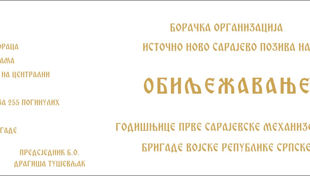 Boračka organizacija opštine Istočno Novo Sarajevo obilježiće u utorak, 20. maja, Dan formiranja Prve sarajevske mehanizovane brigade Vojske Republike Srpske, kada će biti služen parastos za 618 poginulih boraca ove jedinice u Crkvi Svetog velikomučenika Georgija i položeno cvijeće kod spomen-krsta na Vracama.